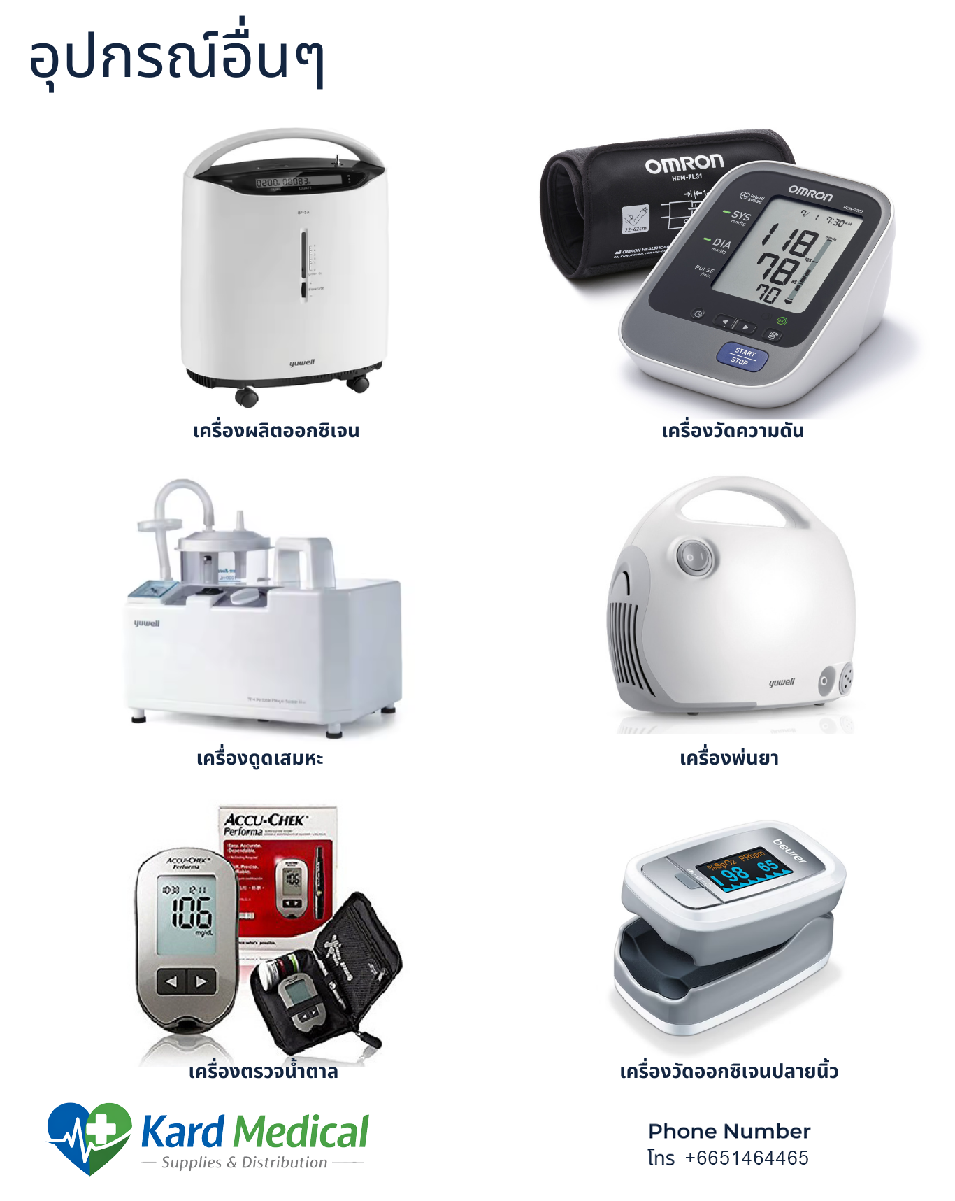 เช่น วอร์คเกอร์ผู้ป่วย ที่หัดเดิน ไม้เท้า ไม้เท้าช่วยเดิน อุปกรณ์ช่วยเดิน เก้าอี้นั่งถ่าย เก้าอี้นั่งอาบน้ำ Karma Soma Yuwell Matsunaga เครื่องวัดความดัน ผ้าอ้อมสำเร็จรูป เป็นต้น