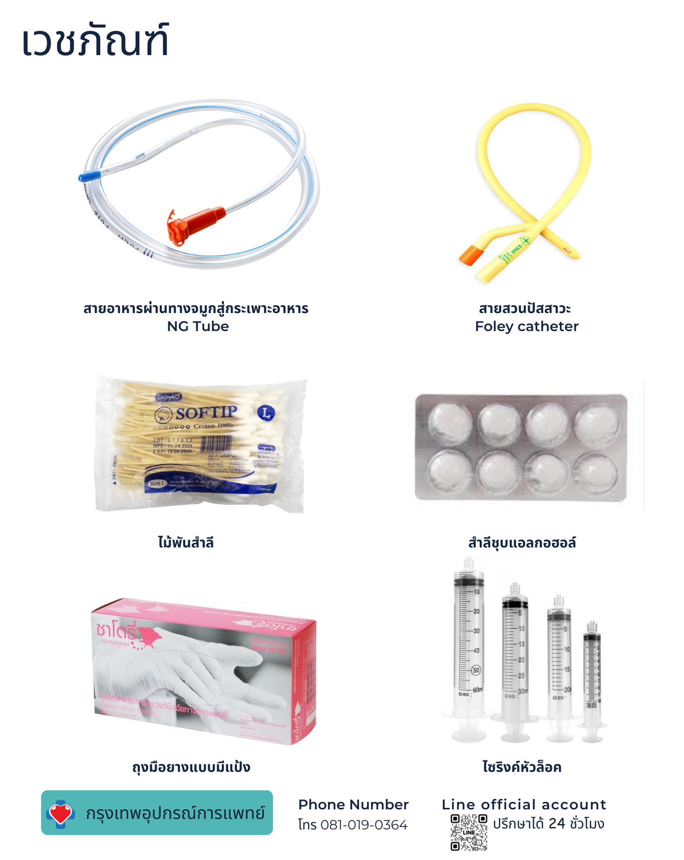 ร้านขายอุปกรณ์การแพทย์ ร้านเวชภัณฑ์ กรุงเทพอุปกรณ์การแพทย์ ที่จำหน่ายอุปกรณ์การแพทย์ ผลิตภัณฑ์ เวชภัณฑ์ต่างๆ ทั้งราคาส่ง และหน้าร้านได้แก่ ผ้าปิดจมูก ถุงมือยาง ผ้าอ้อมผู้ใหญ่ แผ่นเสริมซึมซับ แผ่นรองซับ อุปกรณ์ปฐมพยาบาลเบื้องต้น(ชุดทำแผล)