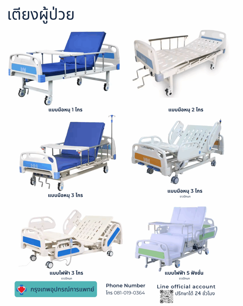 ขายปลีก ขายส่ง เตียงผู้ป่วย เตียงผู้สูงอายุ ราคาถูก กรุงเทพอุปกรณ์การแพทย์ เตียงคุณภาพ มีให้เลือกหลายรุ่น หลายราคา